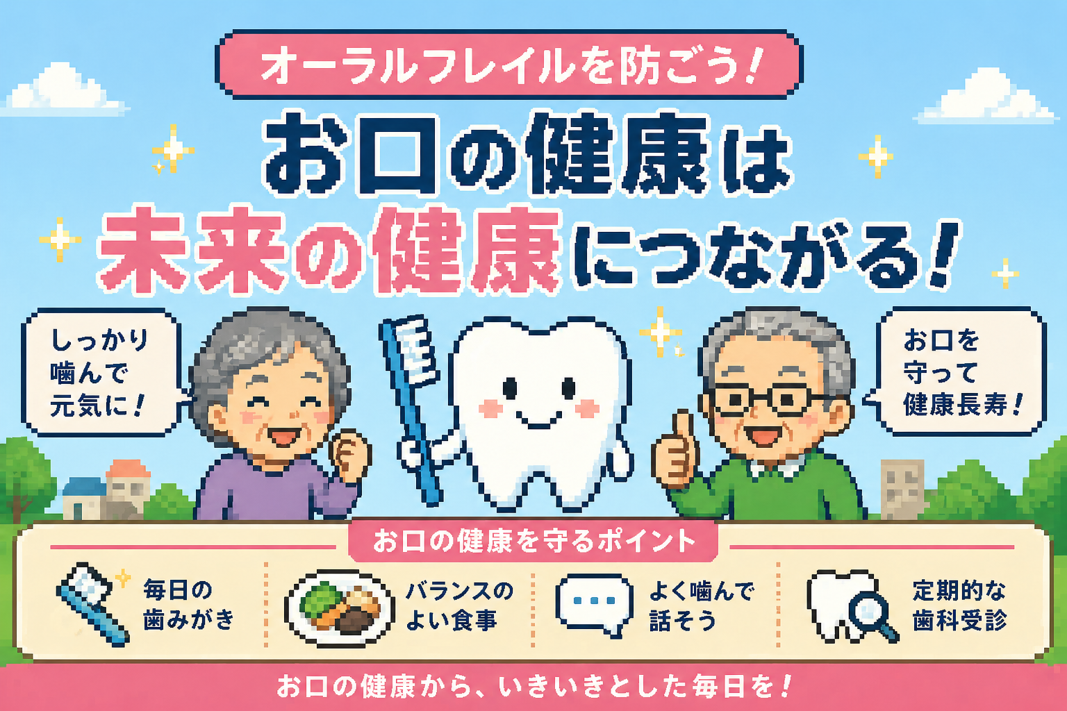 - 定期的な歯科受診・歯磨き・口の体操・誰かと食べること——今日からできることがある
