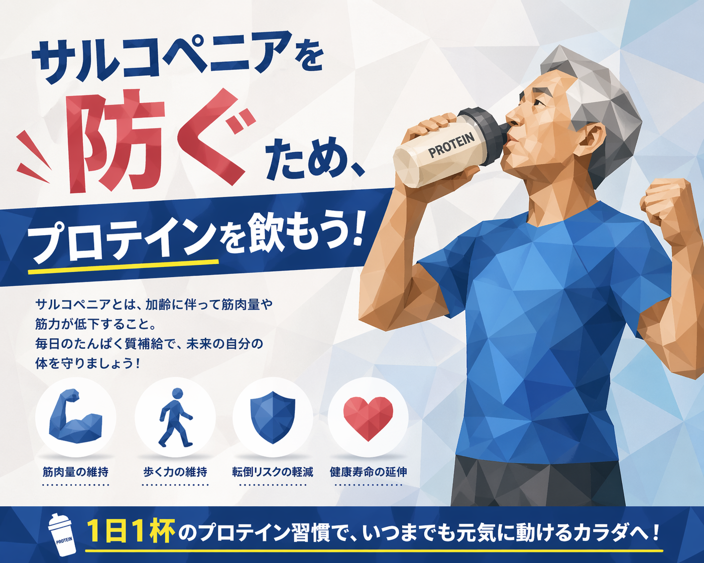 特別な運動をしなくても、毎日のウォーキング+プロテインという組み合わせだけで、筋肉の維持に大きく貢献します。